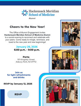 The Alumni Department at Hackensack Meridian School of Medicine is dedicated to fostering a lifelong connection between our graduates and the institution, promoting educational excellence, and enhancing professional development. We strive to create a vibrant and supportive alumni community that empowers members to share knowledge, engage in meaningful collaborations, and contribute to the advancement of healthcare. Through innovative programs and networking opportunities, we aim to inspire our alumni to lead with compassion, integrity, and a commitment to improving the health and well-being of the communities they serve.